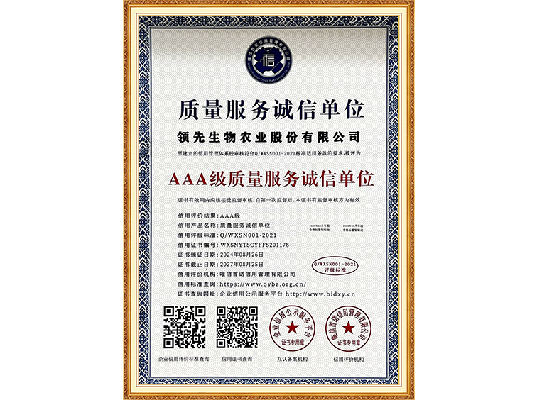 AAA級(jí)誠(chéng)信經(jīng)營(yíng)示范單位